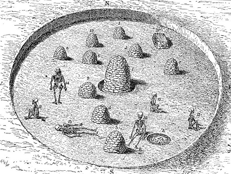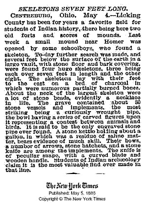 Located in a small town, north of Newark, Ohio have been found gigantic human remains in all of the burial mounds. In one of the mounds a megalithic bee-hive tomb with a keystone at the top was uncovered.