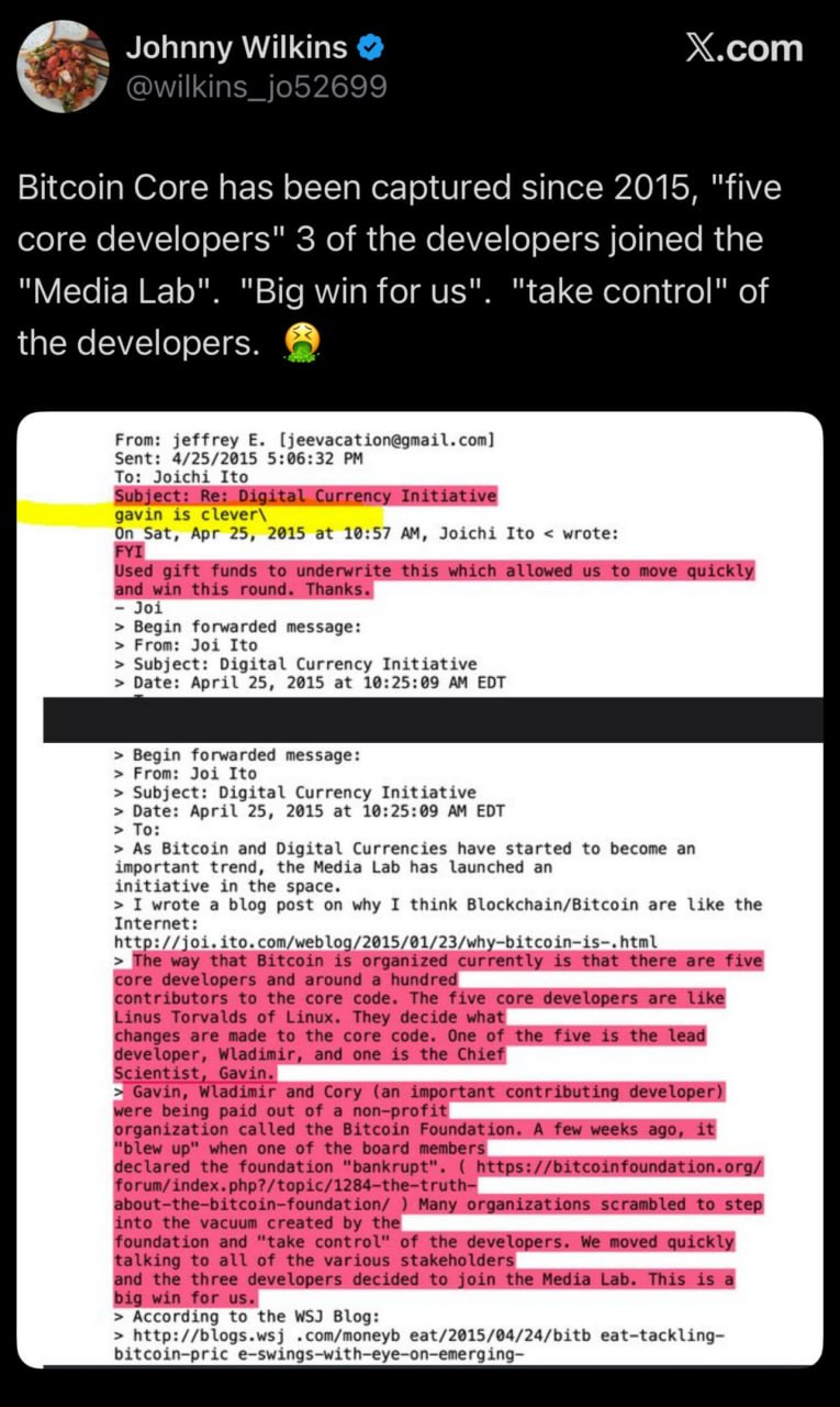 Following the acquisition of Bitcoin Core in 2015, “five core developers” moved to Media Lab. “This is a great gain for us.”