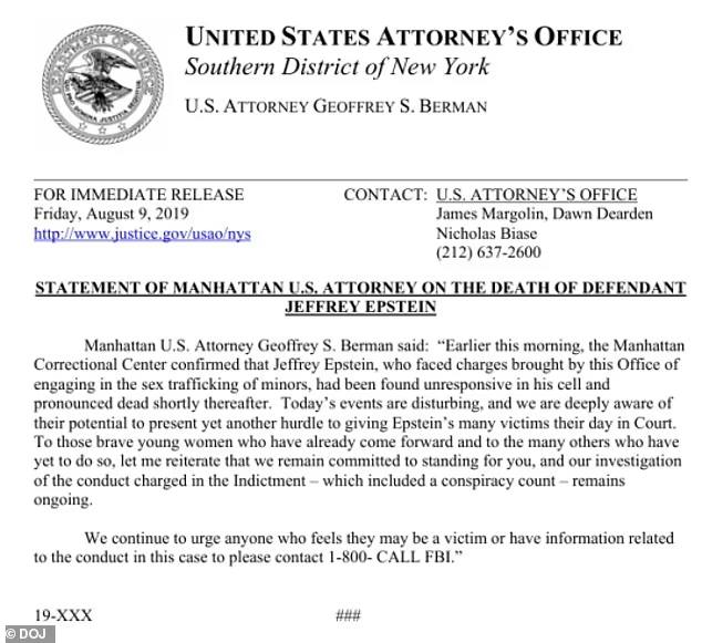 https://substackcdn.com/image/fetch/$s_!5lzI!,w_848,c_limit,f_auto,q_auto:good,fl_progressive:steep/https%3A%2F%2Fsubstack-post-media.s3.amazonaws.com%2Fpublic%2Fimages%2F97113cb0-f0bd-4d0f-aa64-c67705de2078_634x581.jpeg 848w, https://substackcdn.com/image/fetch/$s_!5lzI!,w_1272,c_limit,f_auto,q_auto:good,fl_progressive:steep/https%3A%2F%2Fsubstack-post-media.s3.amazonaws.com%2Fpublic%2Fimages%2F97113cb0-f0bd-4d0f-aa64-c67705de2078_634x581.jpeg 1272w, https://substackcdn.com/image/fetch/$s_!5lzI!,w_1456,c_limit,f_auto,q_auto:good,fl_progressive:steep/https%3A%2F%2Fsubstack-post-media.s3.amazonaws.com%2Fpublic%2Fimages%2F97113cb0-f0bd-4d0f-aa64-c67705de2078_634x581.jpeg 1456w" alt="The press release from the US Attorney's Office regarding the death of Jeffrey Epstein includes a statement from District Attorney Geoffrey S. Berman." width="716" height="656.1451104100946" data-attrs="{"src":"https://substack-post-media.s3.amazonaws.com/public/images/97113cb0-f0bd-4d0f-aa64-c67705de2078_634x581.jpeg","srcNoWatermark":null,"fullscreen":null,"imageSize":null,"height":581,"width":634,"resizeWidth":716,"bytes":null,"alt":"Die Pressemitteilung der US-Staatsanwaltschaft zum Tod von Jeffrey Epstein enthält eine Stellungnahme von Bezirksstaatsanwalt Geoffrey S. Berman.","title":null,"type":null,"href":null,"belowTheFold":true,"topImage":false,"internalRedirect":null,"isProcessing":false,"align":null,"offset":false}" />This photo also confirms that Epstein is still alive. It is not the work of artificial intelligence for the following reasons: